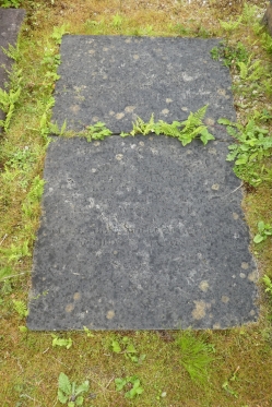 We have no record as to the dates of either William's or his wife's death, but it is almost certain that William died in 1765. There is a memorial stone (No. 75) in the West Greenock Churchyard, commemorating them both and their children, but as is obvious from the wording quoted below, this memorial stone was erected by their son James Gammell, at a much later date, probably just before he left Greenock in about 1822 for his estates in North-east Scotland. The inscription on the stone reads: